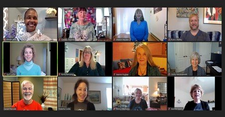 Sharon is pictured here with her Accreditation group and trainer/host on Zoom …(Top 3rd  from left)